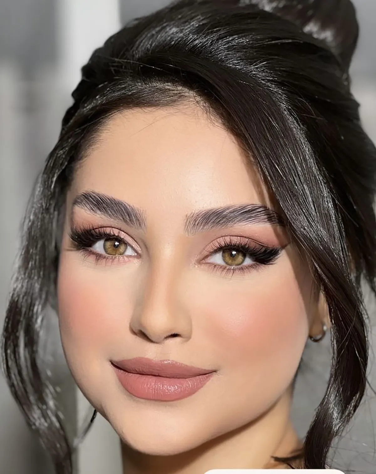 پوست های سفید و روشن معمولا ته رنگ صورتی یا سرد دارند و اگر رنگ های بیش از حد گرم روی آن ها استفاده شود چهره یا بی روح می شود یا بیش از اندازه آرایش شده به نظر می رسد. در آرایش صورت ملایم مجلسی برای این نوع پوست، هدف ایجاد لطافت، شفافیت و حفظ حالت طبیعی چهره است. رژ گونه های صورتی پاستلی و هلویی بسیار روشن باعث می شوند گونه ها شاداب شوند بدون اینکه قرمزی اغراق آمیز ایجاد شود. سایه های شامپاینی، یاسی ملایم و طوسی مایل به قهوه ای (Taupe) به دلیل خنثی بودن بهترین انتخاب برای چشم ها هستند و جلوه ای ظریف و تمیز ایجاد می کنند. در انتخاب رژ لب رنگ هایی مانند صورتی چرک (Dusty Rose) نود صورتی و گوشتی روشن باعث می شوند لب ها طبیعی، نرم و هماهنگ با کل آرایش دیده شوند. این ترکیب رنگی برای مراسم شب عروسی های رسمی و استایل های اروپایی بسیار ایده آل است.پوست گندمی و متوسط (Medium / Wheat Skin)